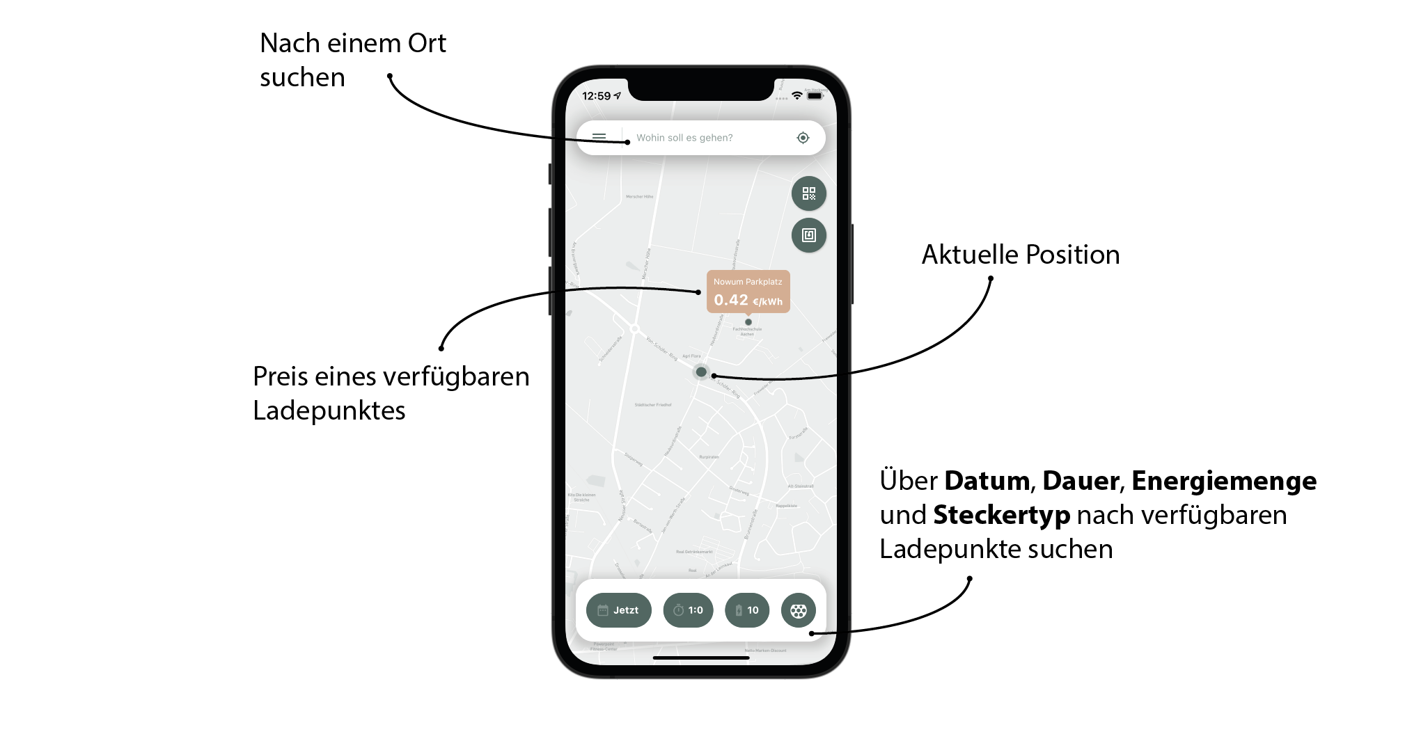 Ein potenzieller Kunde soll durch das im Projekt zu entwickelende „Ladenavi“ im Zielgebiet freie Ladesäulen finden, sich dort über die individuelle Bepreisung des Ladevorgangs informieren, durch die Integration von Parkraumbewirtschaftungspartnern einen Platz reservieren und später alles Abrechnen können.
